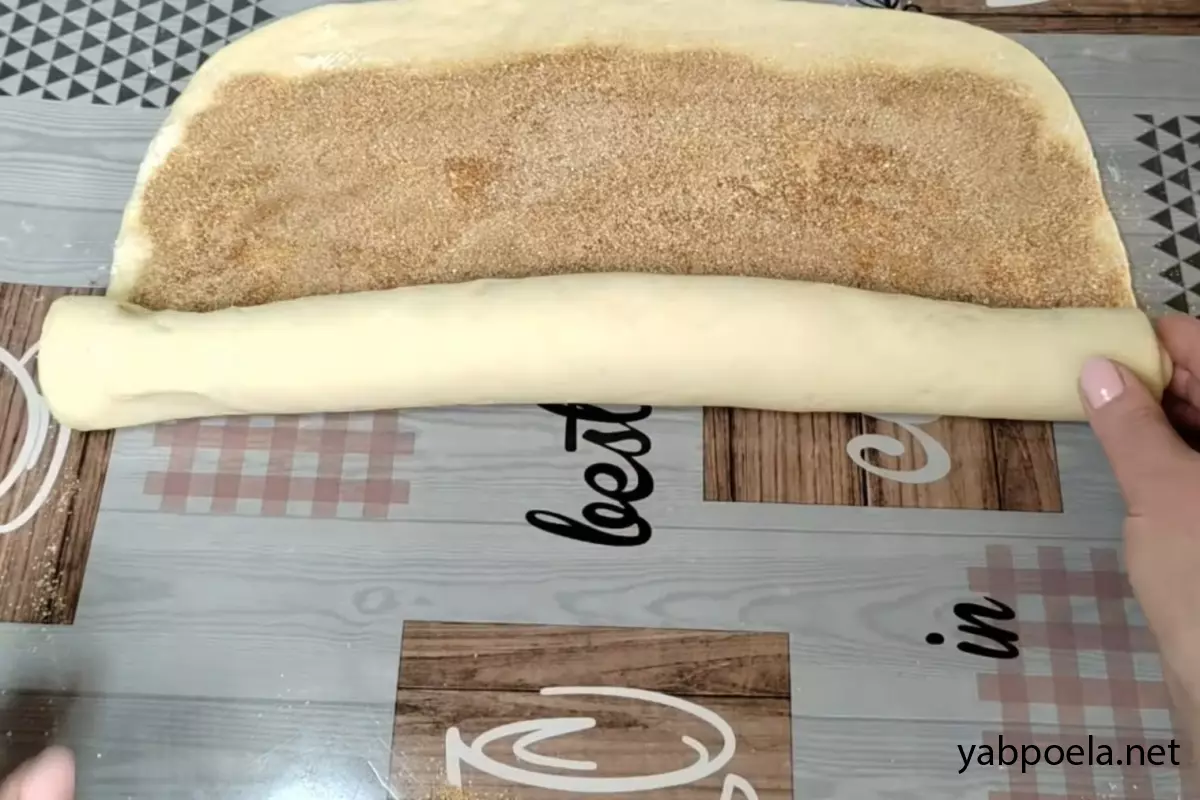 - Текстура рулета: Главный секрет пышных синнабонов — не скручивать рулет туго. Тесто дрожжевое, ему нужно пространство для роста.