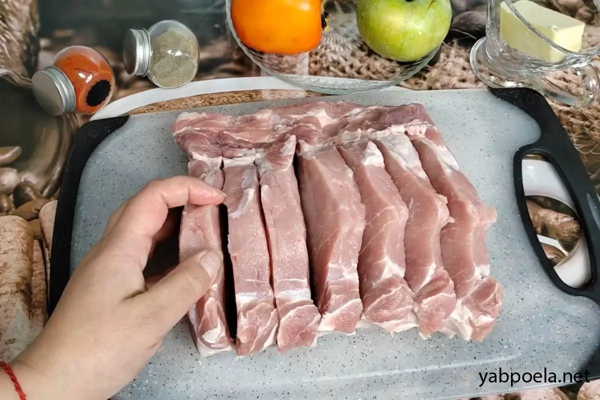 Важно: Не прорезайте мясо до самого конца! Кусок должен раскрываться в виде своеобразной «гармошки», оставаясь единым целым у основания.