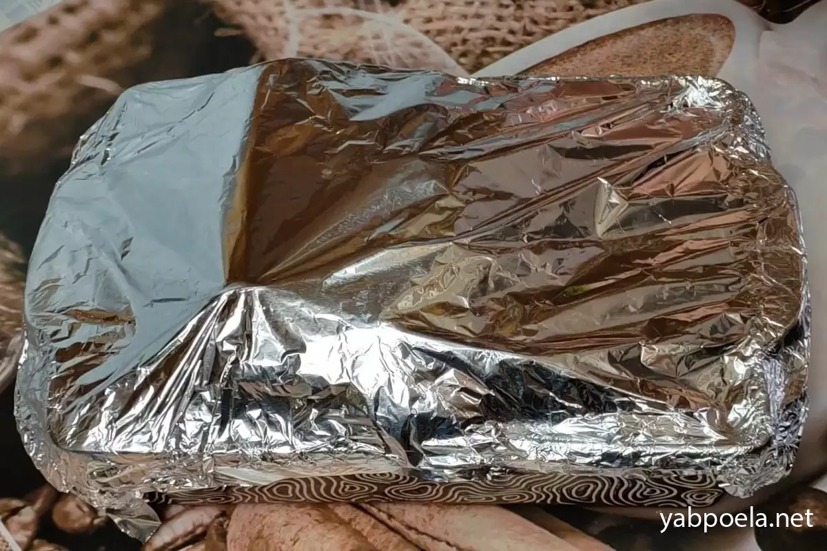 Если форма идеально подходит по размеру и плотно держит кусок (не давая ему развалиться), просто накройте её сверху фольгой. Если форма слишком широкая, плотно укутайте саму свинину в фольгу, чтобы она сохранила форму и соки.
