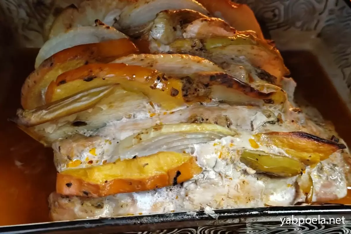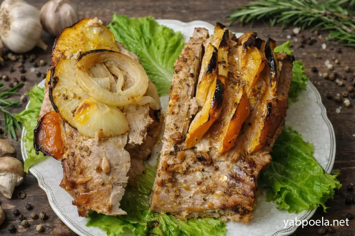 - Альтернатива фруктам: Если вы (или ваши гости) пока не готовы к смелым экспериментам с яблоком и хурмой, мясо можно начинить кусочками айвы. Для любителей классики отлично подойдет начинка из кружочков помидора и болгарского перца.