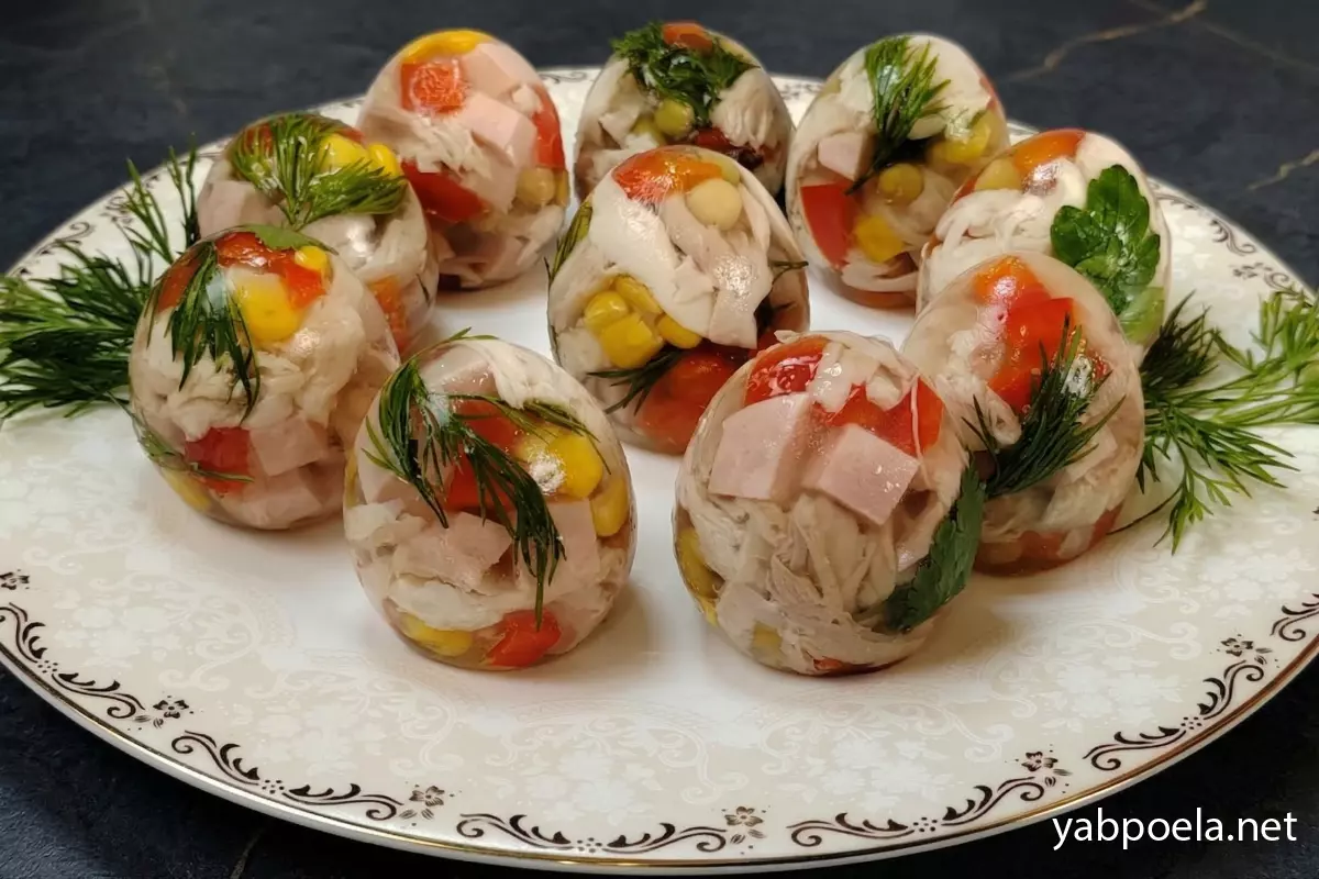 Фантастически красивая закуска, которая выглядит на столе как настоящие драгоценности! Заливное в яичной скорлупе — это тот самый случай, когда из самых простых и доступных продуктов получается блюдо с ресторанной подачей. Прозрачное желе нежно обволакивает кусочки курицы, яркий болгарский перец, кукурузу и горошек, создавая потрясающий мозаичный узор. Такая закуска гарантированно станет главным хитом любого застолья, а процесс подготовки формочек из скорлупы на деле занимает всего несколько минут.