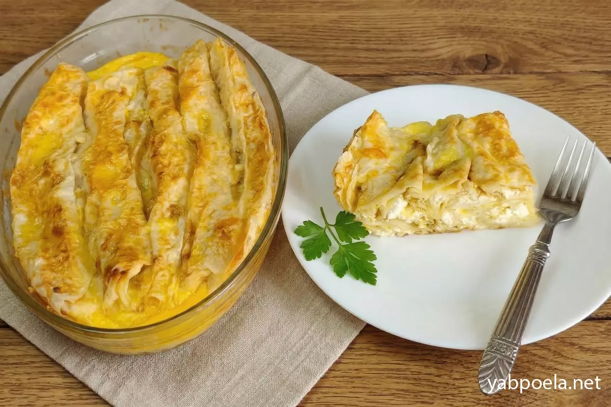 Ленивая ачма из лаваша с творогом и сыром в духовке