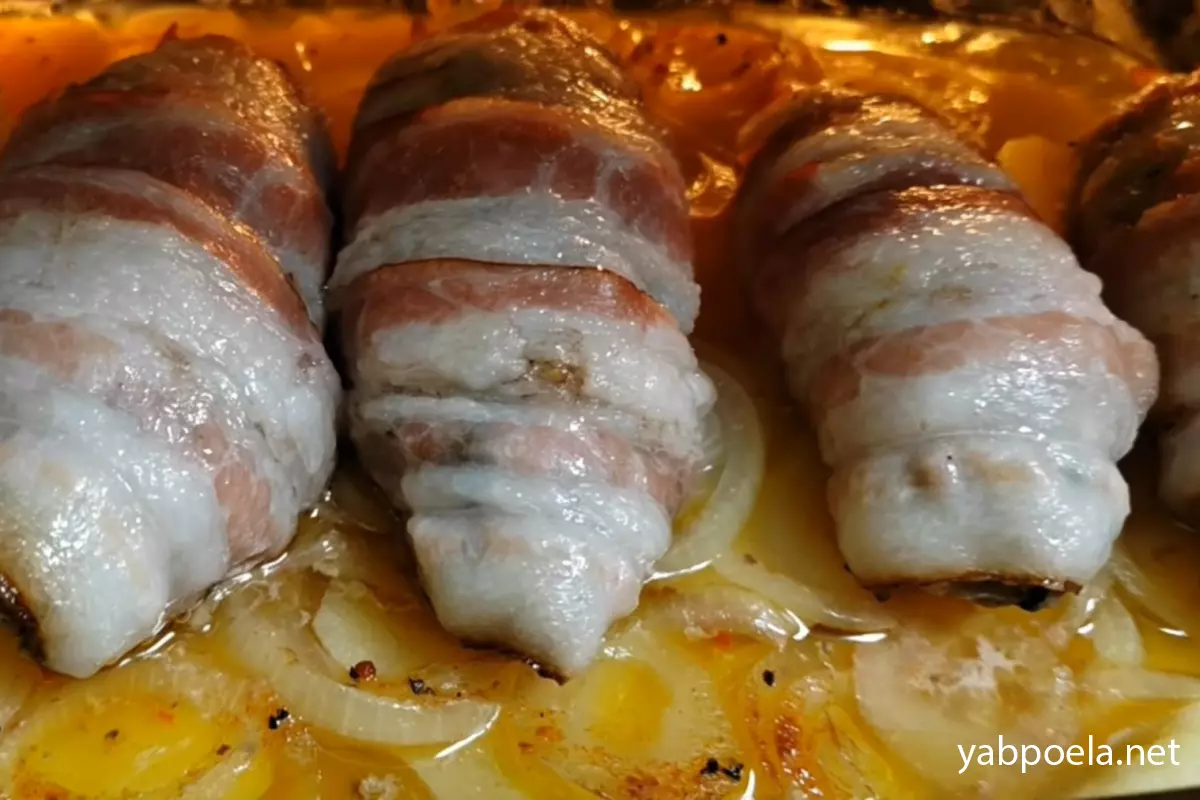 Сочный кебаб с беконом и картофелем в духовке