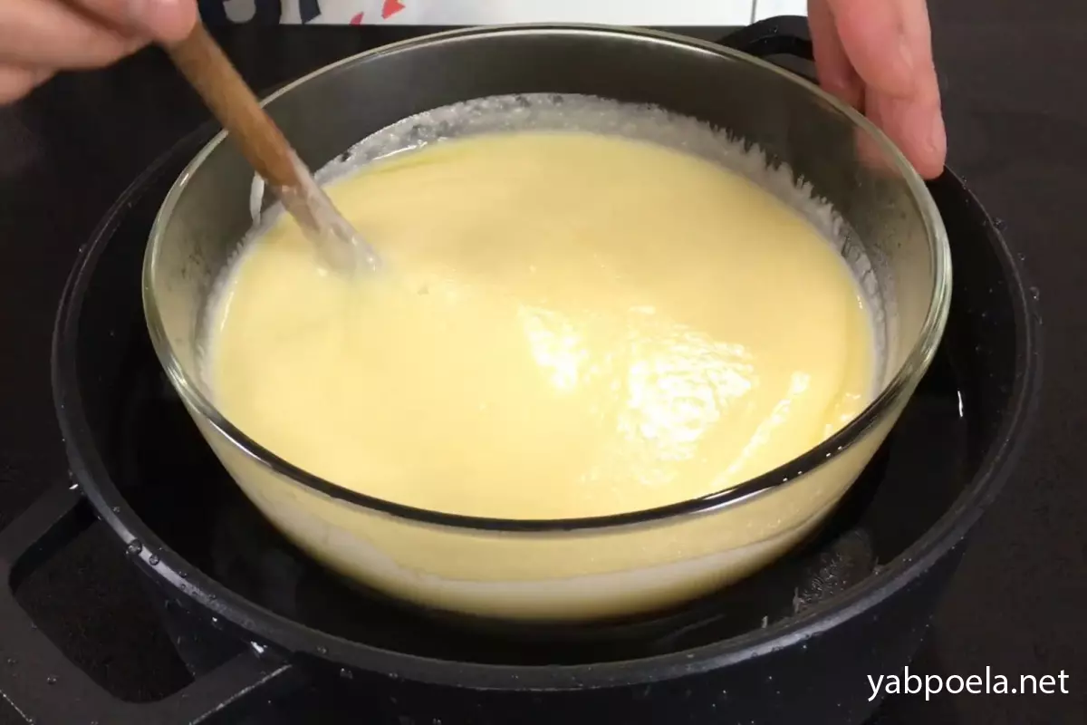 Горячую массу нельзя сразу убирать в холодильник. Подготовьте миску с холодной водой (можно бросить туда пару кубиков льда) и поставьте в нее кастрюлю с творожной массой (сделайте холодную водяную баню). Помешивайте массу, пока она не остынет до комнатной температуры.
