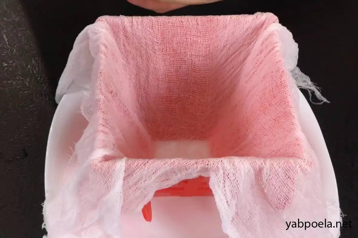 Возьмите специальную форму-пасочницу. Чистую марлю намочите в кипяченой воде и хорошо отожмите (влажная марля не прилипнет к десерту и позволит легко его извлечь). Застелите форму влажной марлей так, чтобы ее края свободно свисали наружу.