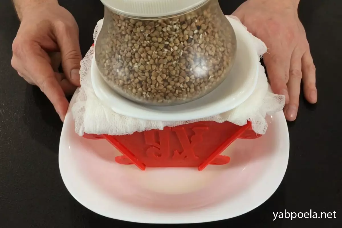 Сверху на марлю установите плоскую тарелочку или крышку и поставьте груз (отлично подойдет банка с крупой или водой). Отправьте форму в холодильник ровно на 1 сутки.