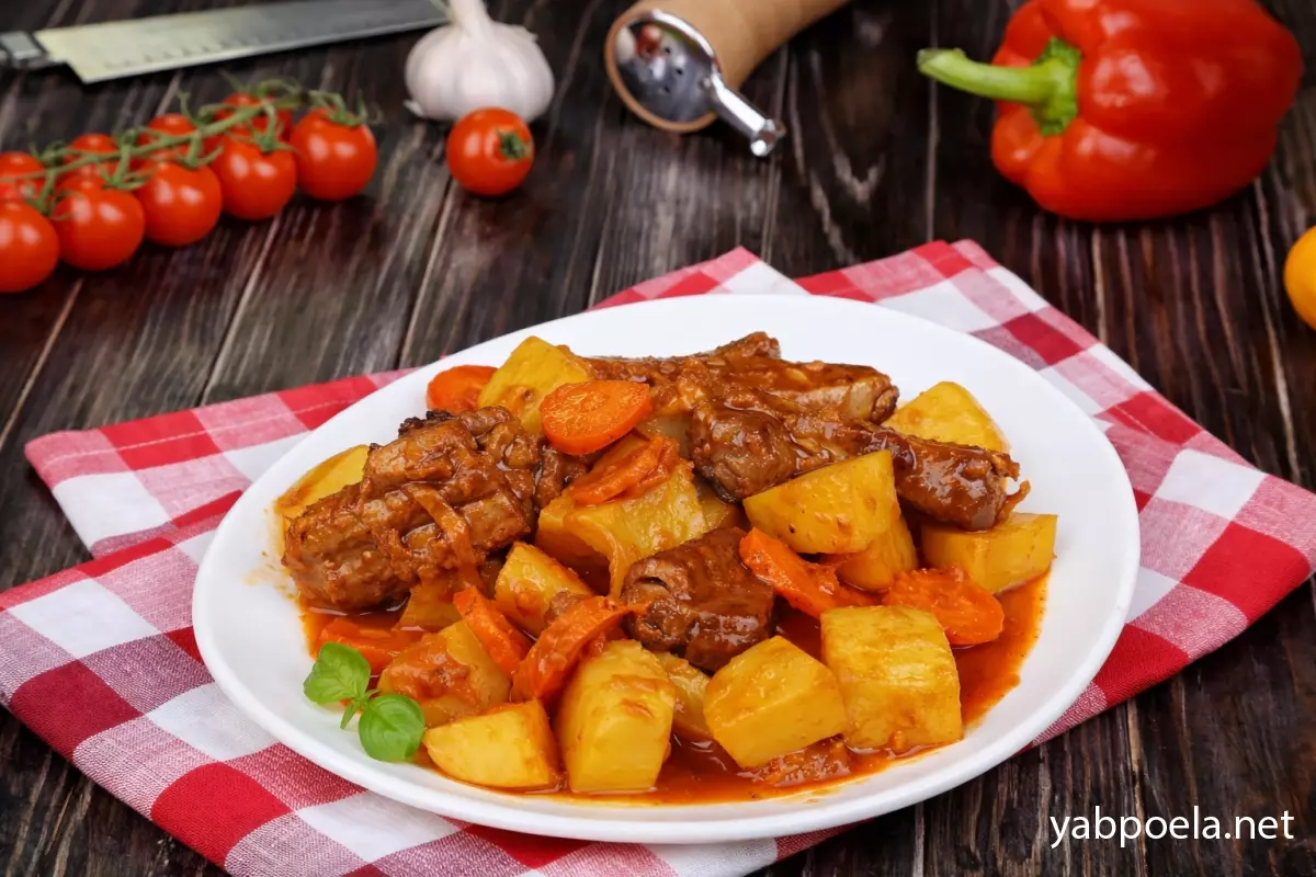 Правильная нарезка: Картофель и мясо должны быть нарезаны соразмерно. Если мясо готовится быстро (например, куриное филе), картофель лучше нарезать мельче, иначе он останется сыроватым.