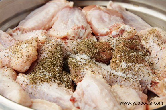 Разогрейте духовку до 200 градусов. Куриные крылышки сзбрызните растительным маслом. Запекайте 30 минут.