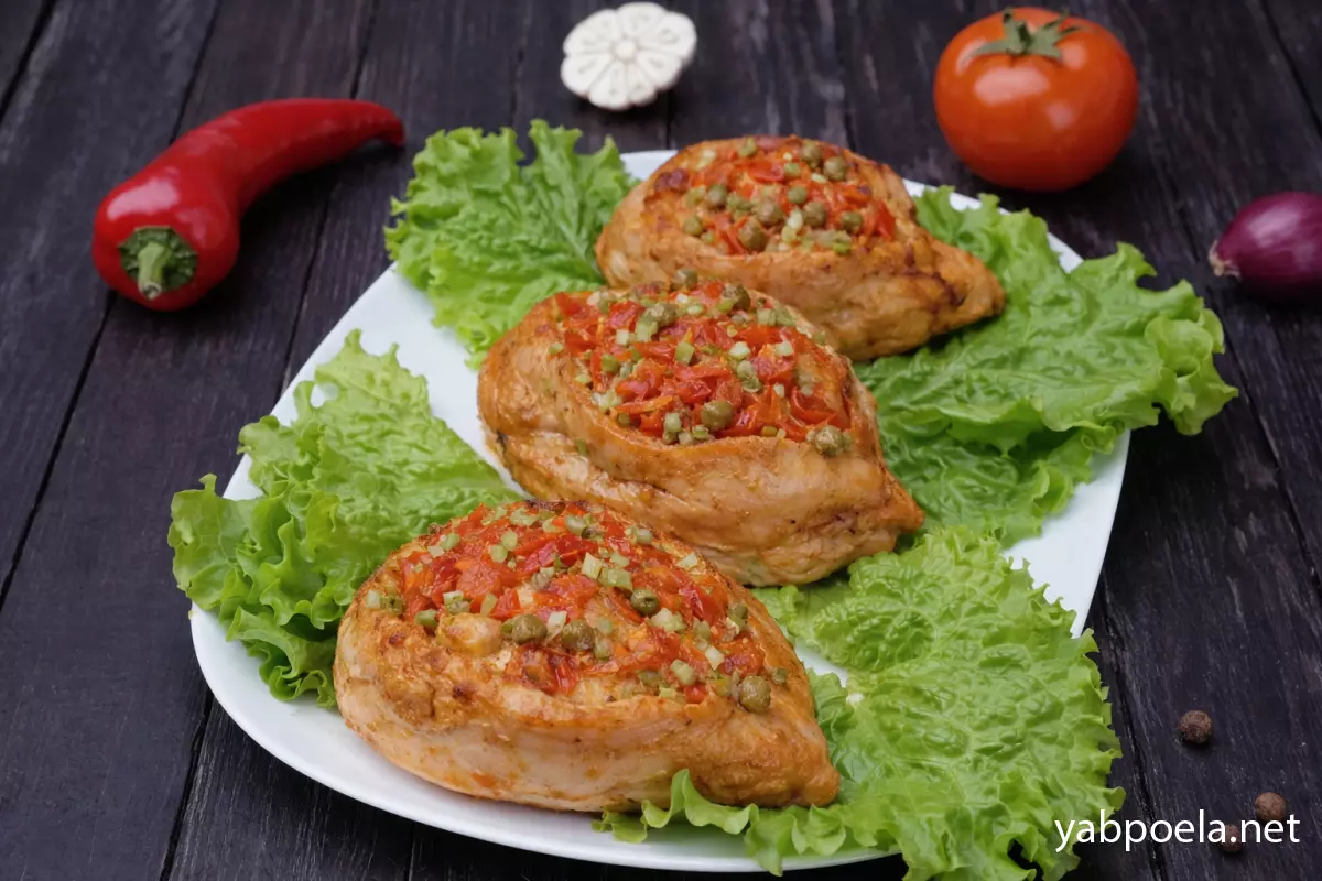 Куриное мясо с овощами в духовке - это простой и оригинальный рецепт. Куриная грудка получается очень вкусной, в ароматном соусе, с сочной начинкой. Это красивое и полезное блюдо. Рекомендую приготовить, если обычное филе надоело, и хочется чего-то вкусного и интересного - филе запеченное с начинкой из овощей и сыра вам обязательно понравится!