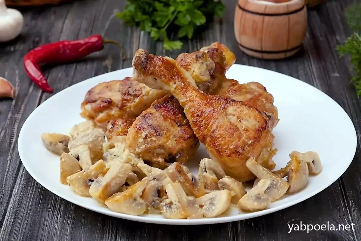 Куриные ножки с грибами под сливочным соусом