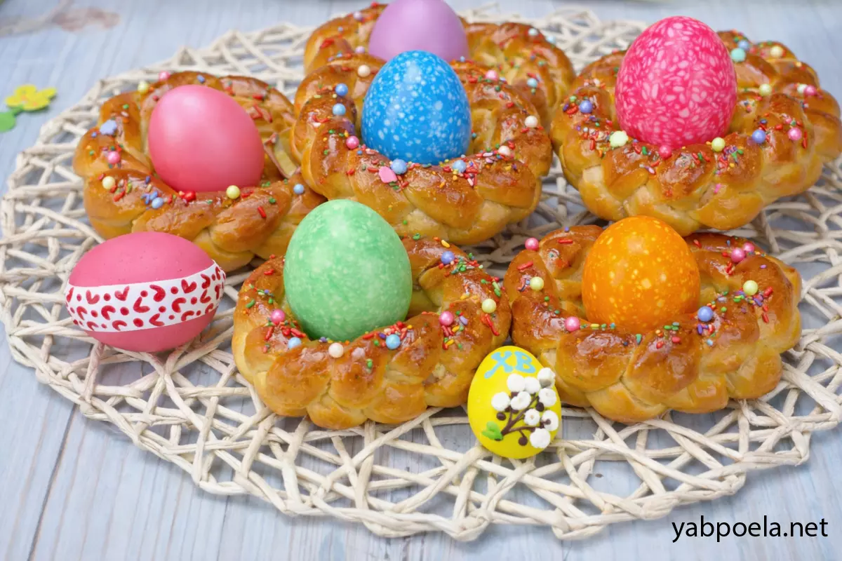 Ароматные пасхальные булочки-веночки готовы! Это идеальные съедобные подставки под яркие пасхальные яйца. Можно подавать порционно каждому гостю.