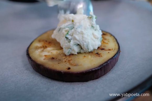 На колечко баклажана выложите примерно 1 ч.л. сырной начинки.