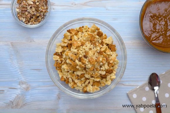 Выпеченное остывшее тесто разломайте руками не сильно мелко.