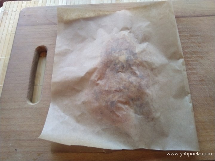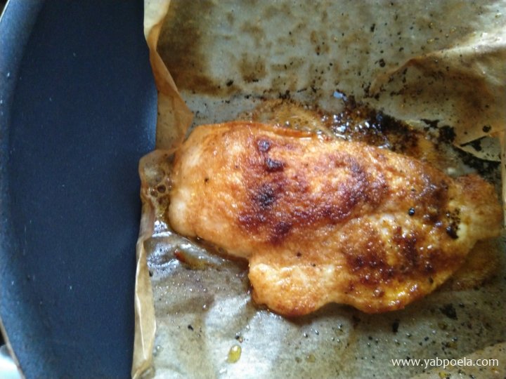 Вот такой сковорода остается после жарки курицы в пергаменте.