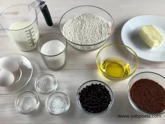 В отдельной емкости соединяем муку, какао и разрыхлитель. Перемешиваем ложечкой и пока что отставляем в сторону.