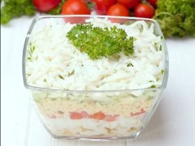 Салаты из курицы 5 (1) Слоеный салат «Бунито» Нежный и очень вкусный слоеный салат с курицей, сыром и морковкой-по корейски. Прекрасно подойдет на праздник и на Lady Le